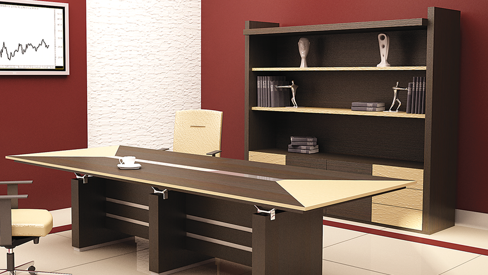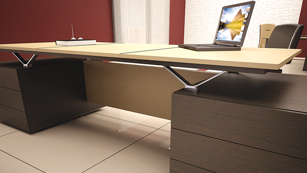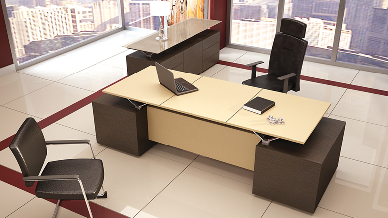Geniş makam odalarında tercih edilen; çok fonksiyonel yan ilavesi ile birlikte yöneticisine farklılık kazandıran özel tasarımlı bir masa.
